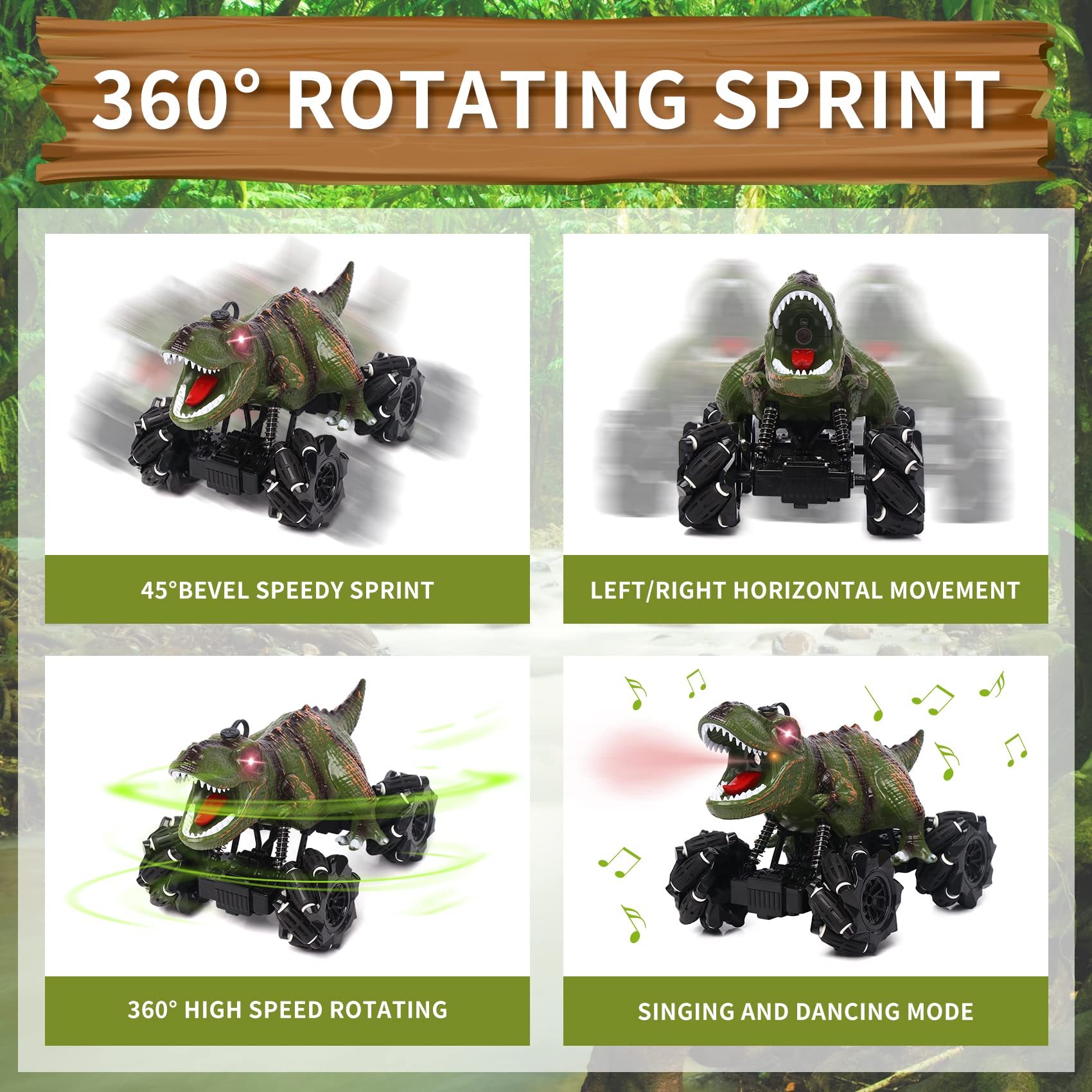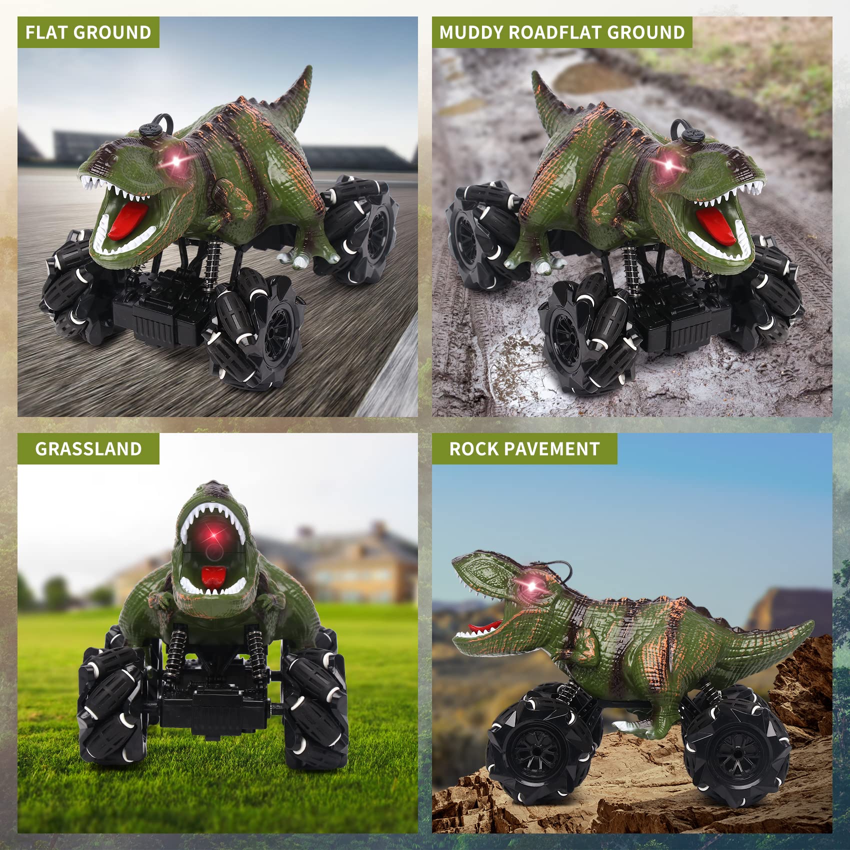 Pamopamo Dinosaur Rc Car 1 16 Dinosaur Monster Rc Truck With Music Led Lights 45 Slope Spray Mist 360 Rotation 4wd Remote Control Car 2 4 Ghz Rc Cars For Adults Boys Girls Christmas